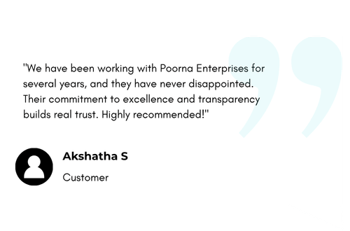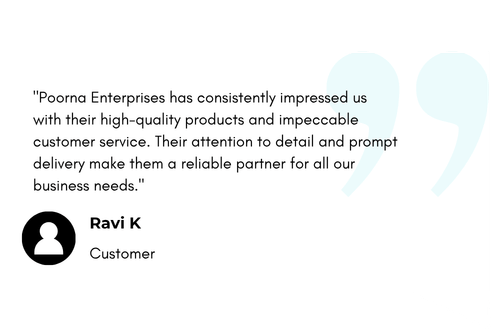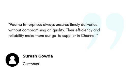 Yes, Poorna Enterprises offers reliable delivery services across Chennai and surrounding areas. For larger or out-of-city orders, we coordinate with trusted logistics partners to ensure safe and timely delivery.